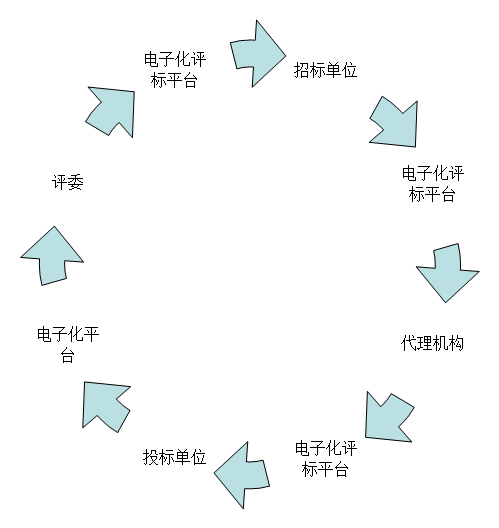 電子招投標是一項龐大的系統工程,其功能的正常發揮需要依托相關企業經濟、產品、服務等信息的廣泛共享,電子招投標的完善與社會經濟信息化水平息息相關。電子招投標把相關各方原先人與人打交道的模式變為人與機器系統打交道的模式,其關系如下圖所示: