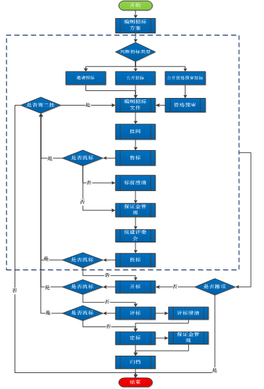 全流程電子招投標平臺通常包括以下功能模塊:投標人/招標人管理、招標方案、會議流量計劃管理、投標邀請、發標、售標、投標、開標、評標、定標、保證金、專家庫、費用管理、澄清、招標異常、監督、歸檔等,并涉及與企業內部管理系統、銀行、第三方CA認證、郵寄國家公共服務平臺等多方的接口管理。    主體業務流程如下圖: